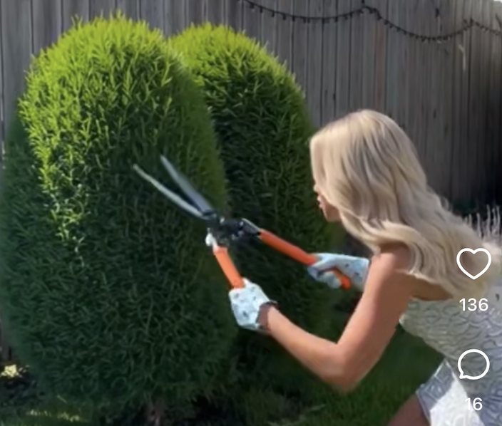 Modern house with dark siding and wooden accents on a quiet urban street, with several potted plants along the entrance and sidewalk.